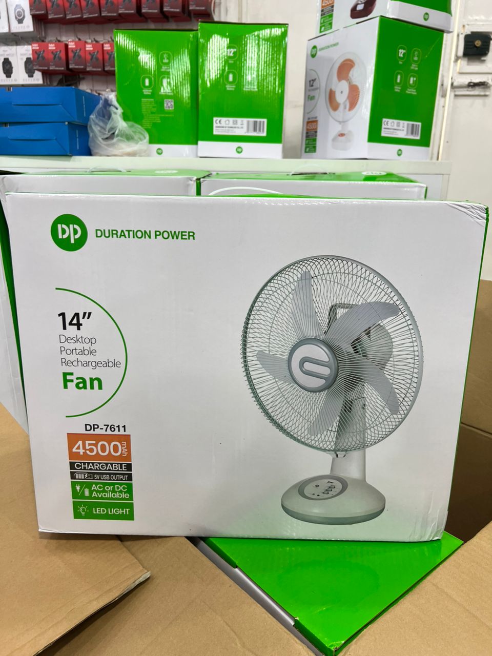 پنکه رومیزی قابل حمل و شارژی 14 اینچی DP-7611 از برند Duration Power است.
